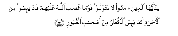 13. Enyi mlio amini! Msiwafanye rafiki zenu watu ambao Mwenyezi Mungu