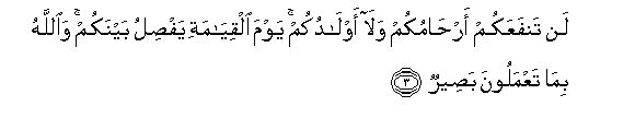 3. Hawatakufaeni jamaa zenu, wala watoto wenu Siku ya Kiyama. Mwenyezi