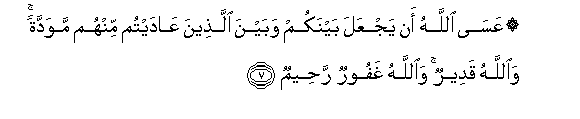 7. Asaa Mwenyezi Mungu akatia mapenzi baina yenu na hao maadui zenu,