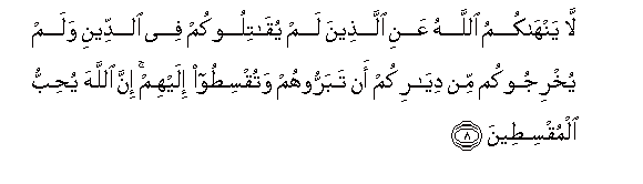 8. Mwenyezi Mungu hakukatazini kuwafanyia wema na uadilifu wale ambao