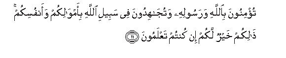 11. Muaminini Mwenyezi Mungu na Mtume wake, na piganeni Jihadi katika