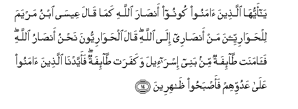 14. Enyi mlio amini! Kuweni wasaidizi wa Mwenyezi Mungu, kama alivyo