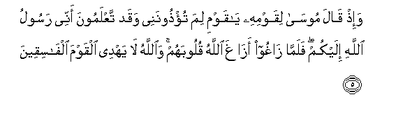 5. Na Musa alipo waambia watu wake: Enyi watu wangu! Kwa nini mnaniudhi,