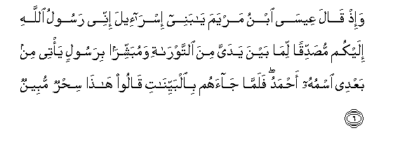 6. Na Isa bin Mariamu alipo sema: Enyi Wana wa Israili! Hakika mimi