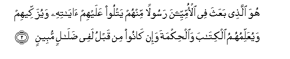 2. Yeye ndiye aliye mpeleka Mtume kwenye watu wasio jua kusoma, awasomee