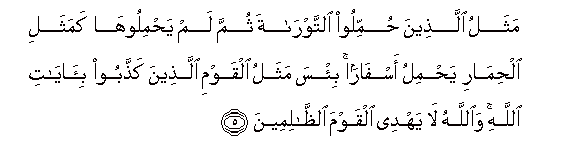 5. Mfano wa walio bebeshwa Taurati kisha wasiibebe, ni mfano wa punda
