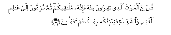 8. Sema: Hayo mauti mnayo yakimbia, bila ya shaka yatakukuteni. Kisha