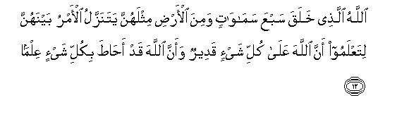 kwa mfano wa hizo. Amri zake zinashuka baina yao, ili mjue kwamba Mwenyezi