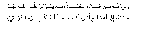 3. Na humruzuku kwa jiha asiyo tazamia. Na anaye mtegemea Mwenyezi