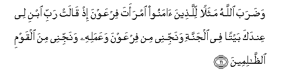 11. Na Mwenyezi Mungu amewapigia mfano walio amini - mkewe Firauni,