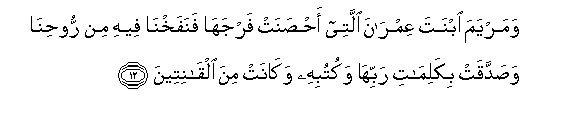 12. Na Mariamu binti wa Imrani, aliye linda ubikira wake, na tukampulizia