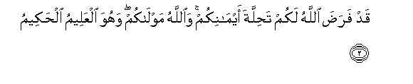 2. Hakika Mwenyezi Mungu kakupeni Sharia ya kufungua viapo vyenu,