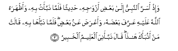 3. Na Nabii alipo mwambia mmoja wa wake zake jambo la siri. Basi