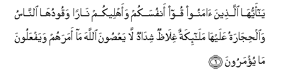 6. Enyi mlio amini! Jilindeni nafsi zenu na ahali zenu na Moto ambao