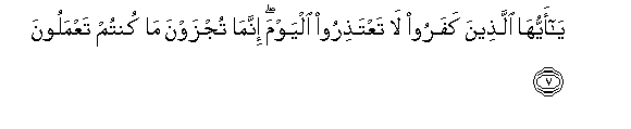 7. Enyi mlio kufuru! Msilete udhuru leo. Hakika mnalipwa mliyo kuwa