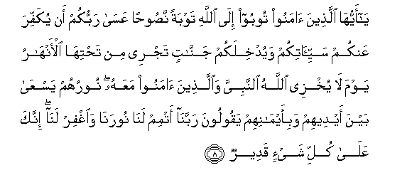 8. Enyi mlio amini! Tubuni kwa Mwenyezi Mungu toba iliyo ya kweli!