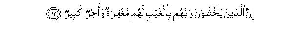 12. Hakika wanao mwogopa Mola wao Mlezi kwa ghaibu, watapata maghfira
