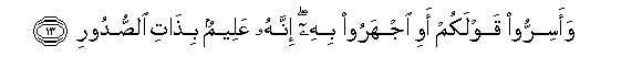 13. Na ficheni kauli zenu, au zitangazeni; hakika Yeye ni Mjuzi wa