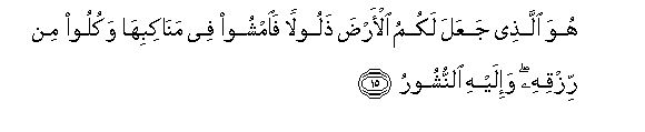15. Yeye ndiye aliye idhalilisha ardhi kwa faida yenu, basi tembeeni