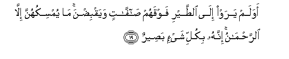 mbawa zao, na kuzikunja? Hawawashikilii ila Mwingi wa rehema. Hakika Yeye