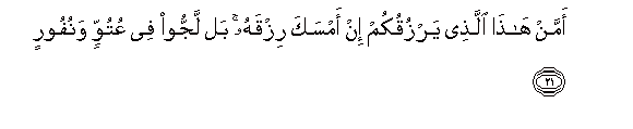 21. Au ni nani huyo ambaye atakupeni riziki kama Yeye akizuia riziki