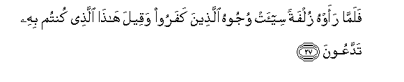 27. Lakini watakapo iona karibu, nyuso za walio kufuru zitahuzunishwa,