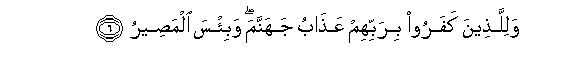 6. Na kwa walio mkufuru Mola wao Mlezi ipo adhabu ya Jahannamu. Na
