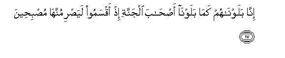 17. Hakika tumewajaribu hawa kama tulivyo wajaribu wale wenye shamba,