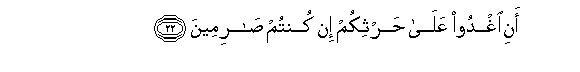 22. Ya kwamba nendeni kondeni mwenu ikiwa mnataka kuvuna.