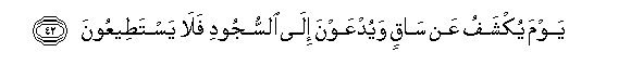 42. Siku utakapo wekwa wazi mundi, na wataitwa kusujudu, lakini hawataweza,