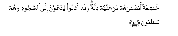 43. Macho yao yatainama chini, fedheha itawafunika. Na hakika walikuwa