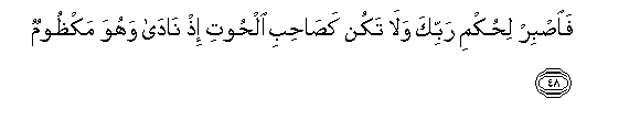 48. Basi ingojee hukumu ya Mola wako Mlezi, wala usiwe kama mmezwa