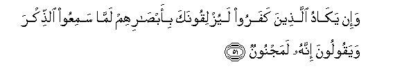 51. Na walio kufuru hukaribia kukutelezesha kwa macho yao, wanapo