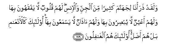179. Na tumeiumbia Jahannamu majini wengi na watu. Wana nyoyo, lakini