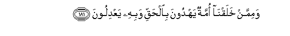 181. Na katika tulio waumba wako watu wanao ongoza kwa Haki, na kwayo