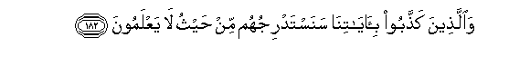 182. Na wale walio kadhibisha Ishara zetu, tutawapururia pole pole