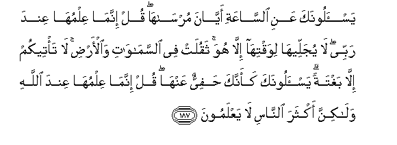 187. Wanakuuliza hiyo Saa (ya mwisho) itakuwa lini? Sema: Kuijua
