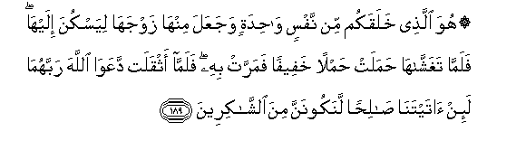 189. Yeye ndiye aliye kuumbeni katika nafsi moja; na katika hiyo
