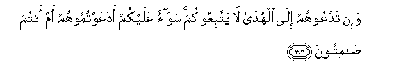 193. Na mkiwaita kwenye uwongofu, hawakufuateni. Ni mamoja kwenu