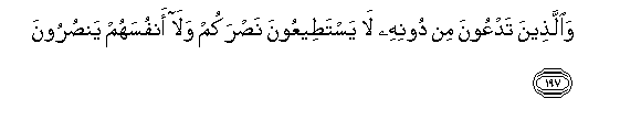 197. Na hao mnao waomba asiye kuwa Mwenyezi hawawezi kukunusuruni,