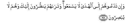 198. Na mkiwaita kwenye uwongofu hawasikii. Na unawaona wanakutazama,