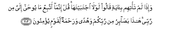 203. Na usipo waletea Ishara waitakayo husema: Kwa nini hukuibuni?