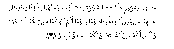 22. Basi akawateka kwa khadaa. Walipo uonja ule mti, tupu zao zilifichuka
