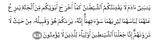 27. Eny wanaadamu! Asije Shet'ani kukufitinini kama alivyo watoa