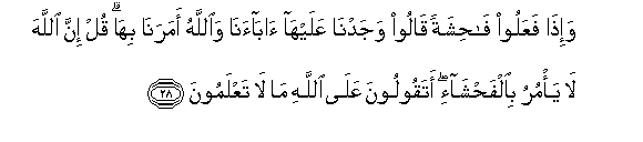 28. Na wanapo fanya mambo machafu husema: Tumewakuta nayo baba zetu,