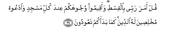 29. Sema: Mola Mlezi wangu ameamrisha uadilifu, na mumuelekeze nyuso