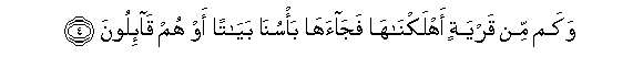 4. Na miji mingapi tuliiangamiza, ikaifikia adhabu yetu usiku au