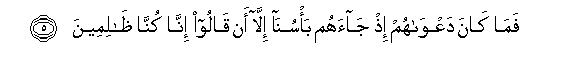 5. Basi hakikuwa kilio chao ilipo wafikia adhabu yetu, isipo kuwa