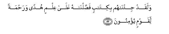 Hii (Qur'ani) ni hoja zinazo toka kwa Mola wenu Mlezi, na uwongofu na rehema