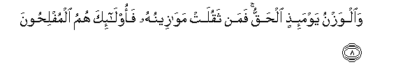 8. Na Siku hiyo kipimo kitakuwa kwa Haki. Basi watakao kuwa na uzani